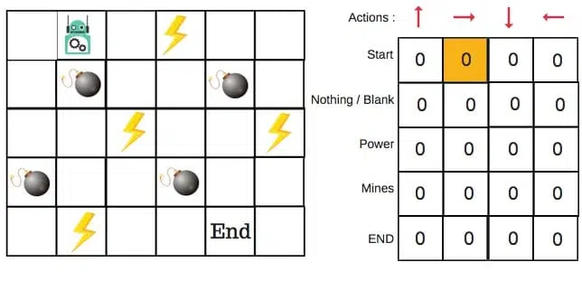 我们将首先构建一个Q表。有n列,其中n =操作数。有m行,其中m =状态数。我们将值初始化为0。